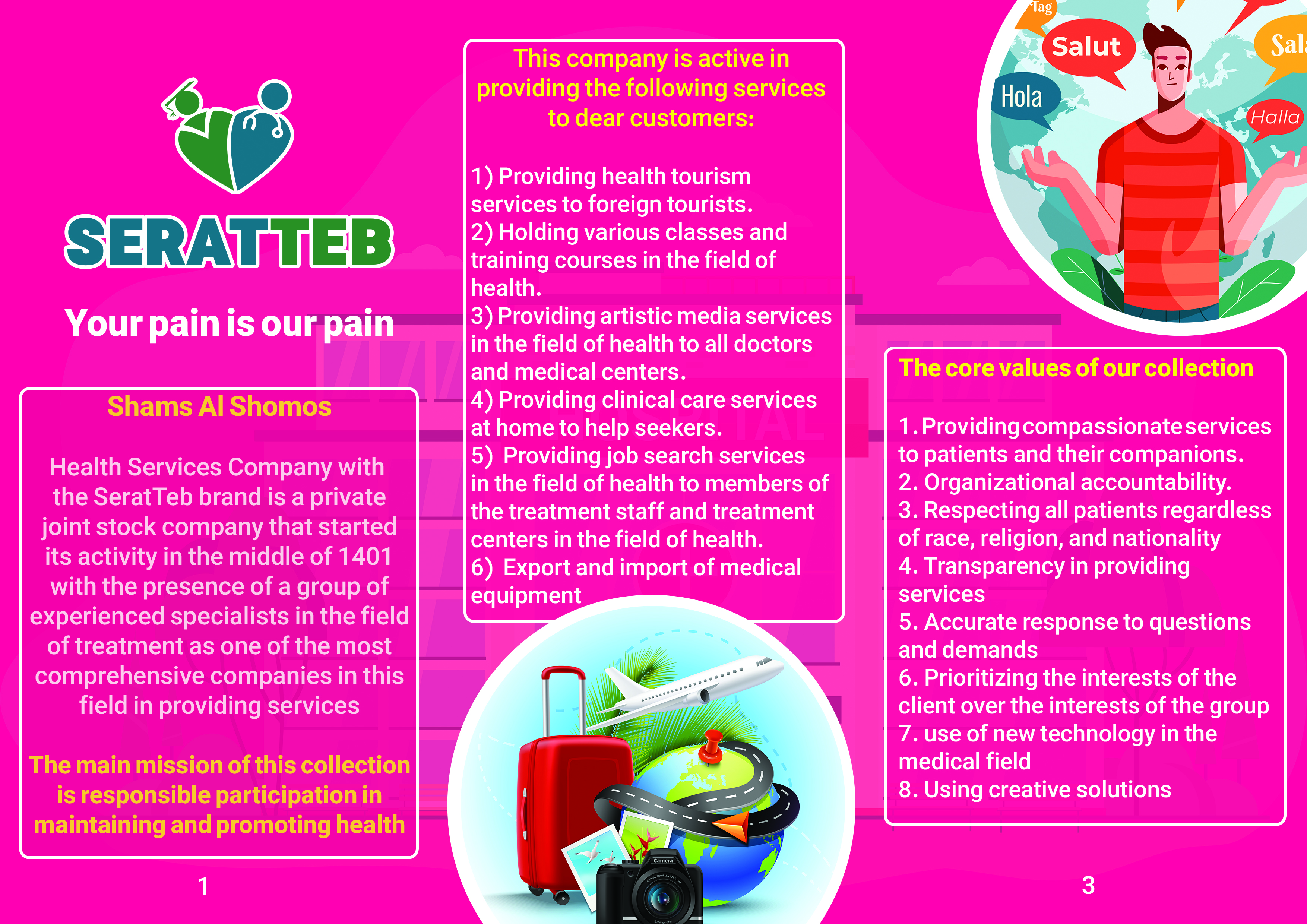 قالب طرح: قالب طرح در قالب یک استارتاپ و شرکت رسمی است که چرخه کامل خدمات گردشگری سلامت را ارائه میدهد. در کنار آن، بستههای آموزشی و فرهنگی مانند اسلامشناسی، شیعهشناسی و کرسیهای گفتوگو نیز طراحی شدهاند. البته بخشهایی از این بستهها به علت کمبود مشتری هنوز اجرایی نشدهاند.