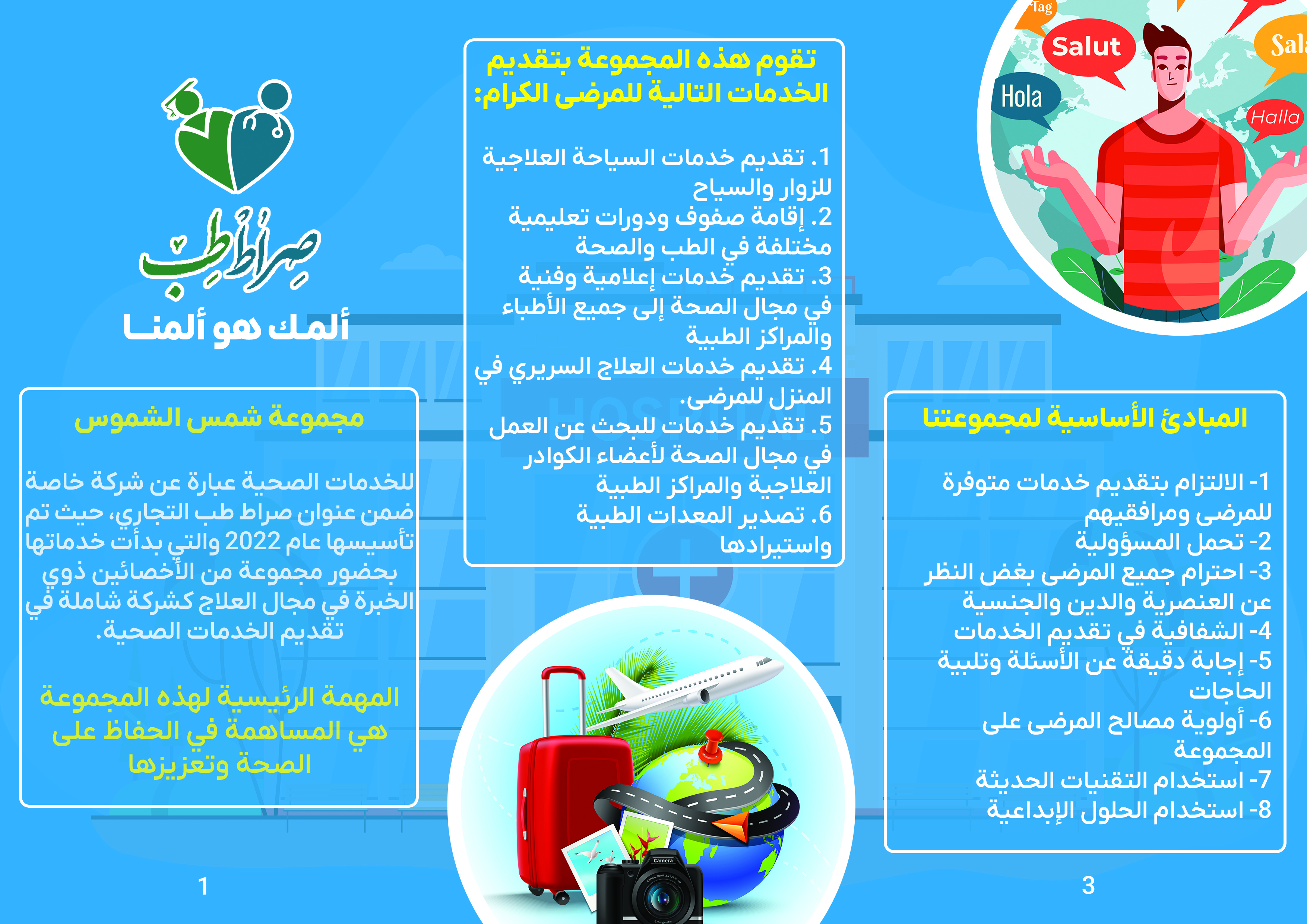 مخاطبشناسی: مخاطبین عمدتاً از کشورهای عربی مانند عراق و حاشیه خلیج فارس هستند که برای درمان و زیارت به ایران، خصوصاً مشهد میآیند. عمدتاً مرد، جوان یا میانسال، و دارای بیماریهایی چون دیابت، مشکلات قلبی یا سرطانی هستند. برای مخاطبین غیرشیعه مانند روسها نیز طراحیهای ویژهای مدنظر بوده است.