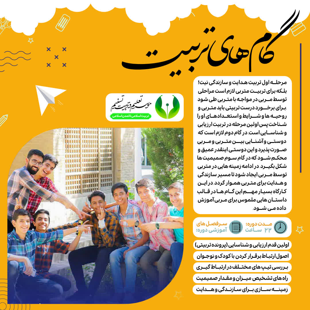 ورود به مدارس: گروههای تربیتی پس از آموزش، با مدیران مدارس تعامل کرده و وارد مدارس میشوند. سپس طرحهای تربیتی تدوینشده را اجرایی میکنند.